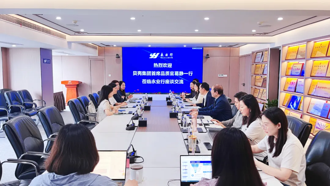 贝壳集团首席品质官葛静一行莅临永业行座谈交流 2025-04-27 2025年4月25日,贝壳集团首席品质官葛静一行莅临永业行,就贝壳的转型历程和经验展开交流。永业行董事长潘世炳,常务副总裁吴学锋等热情接待并参加座谈交流。       葛静介绍了贝壳从信息化、标准化、线上化、数字化到智能化的转型历程,从构建数据基础设施、经纪人协作网络与组织变革、面向客户及面向合作方的服务理念及管理体系,以及开放平台与行业生态共建等方面分享经验做法。她表示,贝壳致力于打造科技驱动的一站式新居住服务平台,持续提升产业数字化与智能化能力,丰富 MORE