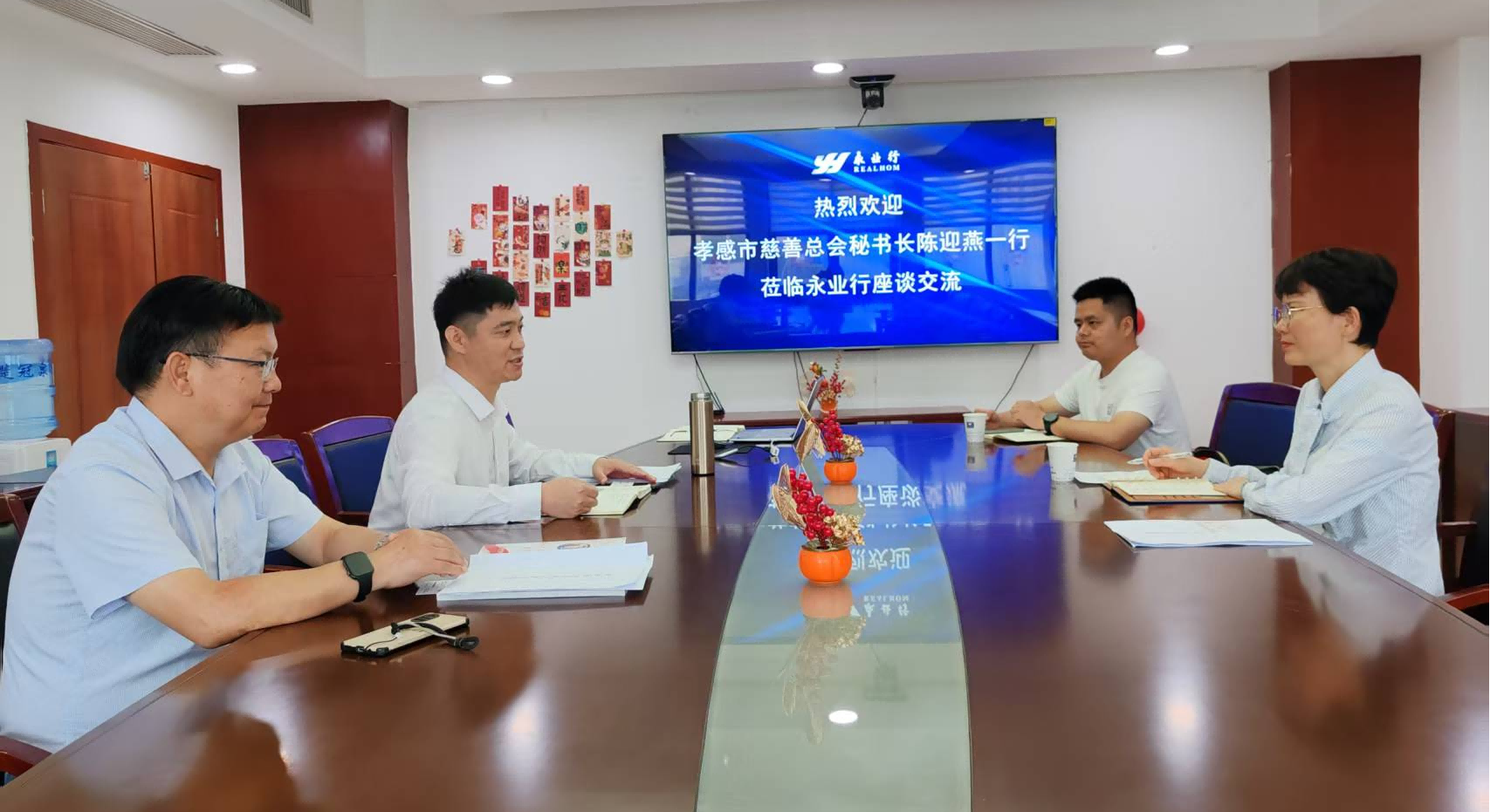 孝感市慈善总会秘书长陈迎燕一行莅临永业行座谈交流 2025-05-19 2025年5月14日,孝感市慈善总会秘书长陈迎燕一行莅临永业行孝感分部,就企业发展、慈善工作开展情况进行座谈交流。永业行孝感分部执行董事张立胜、总经理梁小虎热情接待并参加座谈交流。 陈迎燕对永业行积极履行社会责任、主动投身慈善事业的做法及助力孝感主城崛起做出的贡献给予高度评价,并介绍了孝感市慈善总会基本情况、慈善基金实施方案,提出了设立专项基金账户、设立慈善实践基地、书画永业行义卖、企业税费减免、会员单位相互推荐等方面的合作意向。 梁小虎对陈迎燕一行的到访表示热烈欢迎,感谢孝感市慈善总会对企业发展的关心,并介绍了孝感分部的发展历程、业务版块、“1+六位一体&rdq MORE