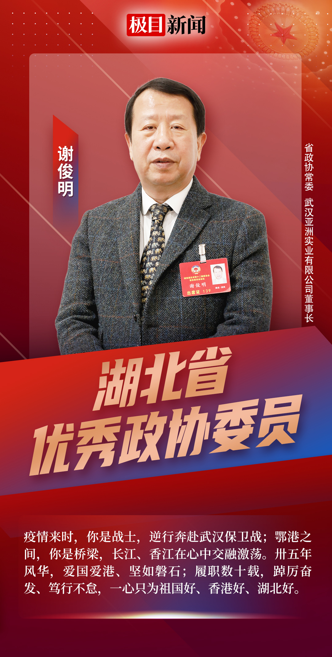 极目新闻:重磅!100名“湖北省优秀政协委员”公布!