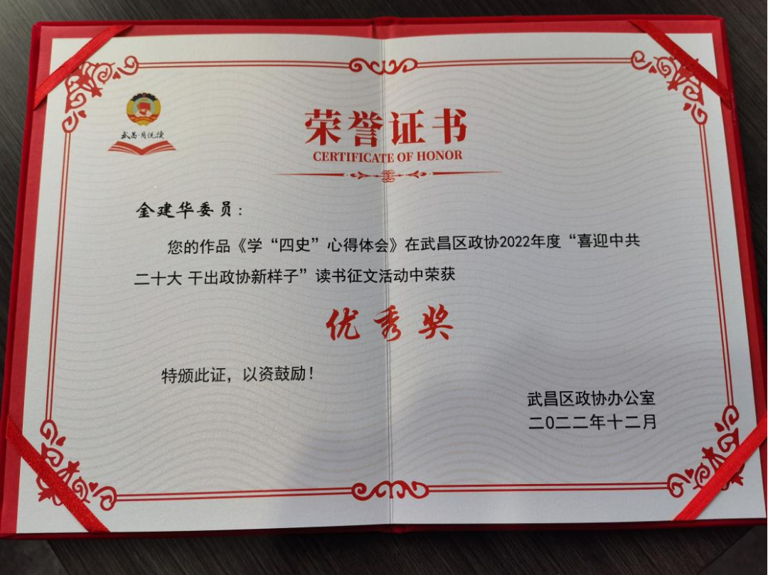 会议听取并审议了审议通过《政协武昌区第十五届委员会第二次会议关于常务委员会工作报告的决议》《政协武昌区第十五届委员会第二次会议关于常务委员会提案工作情况报告的决议》《政协武昌区第十五届委员会第二次会议政治决议》;选举产生了政协武昌区第十五届委员会副主席、秘书长和常务委员;对区政协十五届一次会议《关于加快培育和壮大我区战略性新兴产业,打造科创强区的建议》《关于加快推进武昌音乐谷建设,助推古城文化复兴的建议》2件建议案办理情况满意度进行测评,表决确立《关于推进国家气候投融资试点建设,打造武昌现代“金融之城”的建议》《关于推进“共同缔造”示范社区建设,构建基层社会治理共同体的建议》为区政协十五届二次会议大会建议案。会议还表彰了先进界别组(街道政协联络委)、优秀大会发言单位、优秀政协委员等年度先进集体和个人。金建华委员所撰写的《学“四史”心得体会》在武昌区政协2022年度“喜迎中共二十大 干出政协新样子”读书征文活动中荣获“优秀奖”。