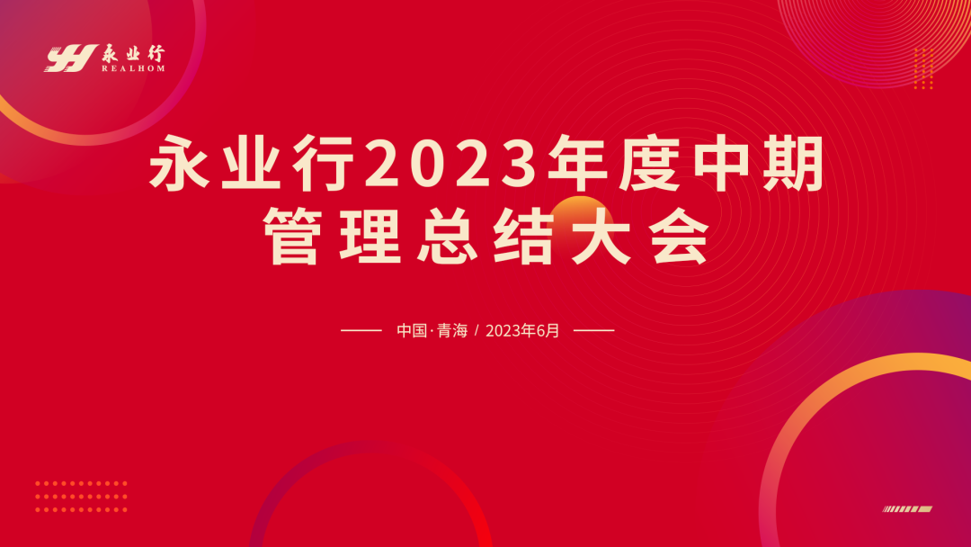 2023年6月20—24日,永业行2023年度中期管理总结大会在青海省西宁市召开,全面总结上半年工作,研判当前宏观经济形势,深入分析工作中的问题与不足,扎实部署下半年重点工作。永业行党委书记、董事长潘世炳出席会议并讲话。常务副总裁吴学锋作半年度工作报告。联席总裁王琴,高级副总裁文云波,副总裁雷小军、金建华、雷小明,助理总裁徐宇初及各部门负责人、班子成员代表、年度标兵等70余人参加会议。
