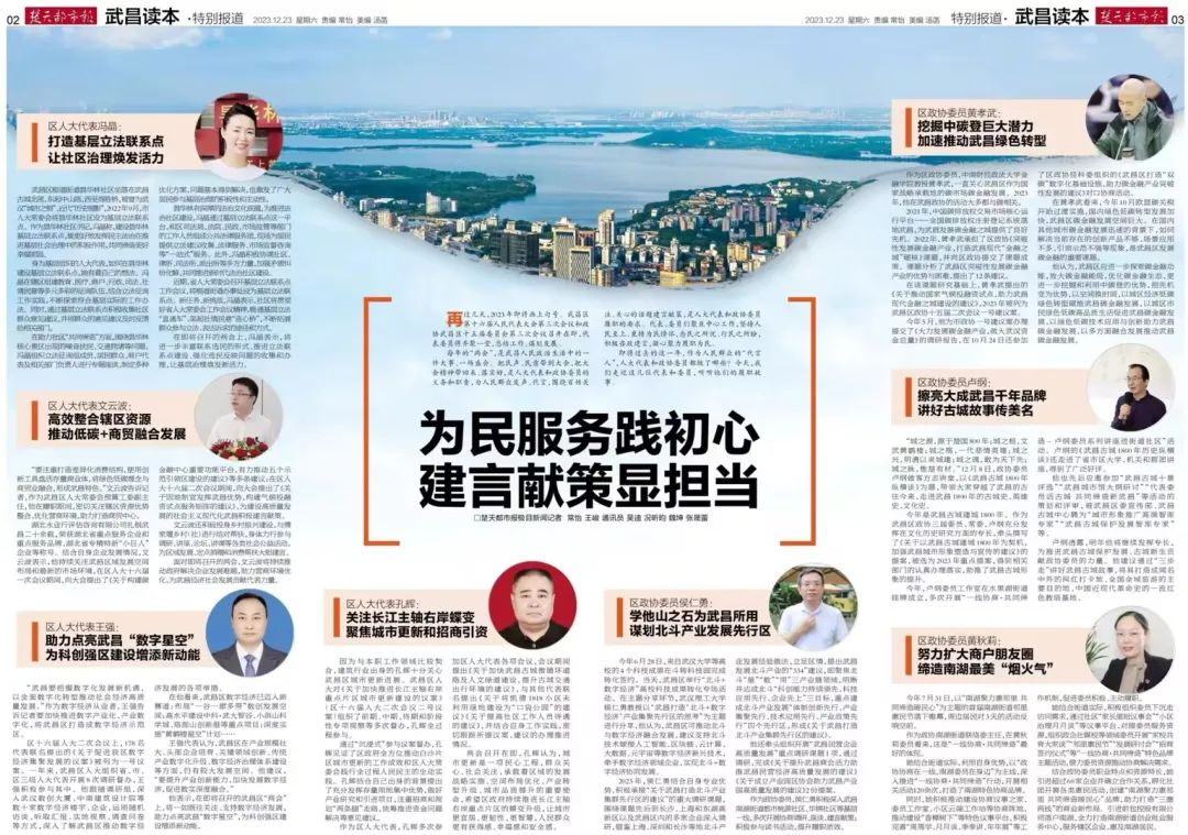 自担任武昌区人大代表以来,文云波始终牢记使命、认真履职,积极融入全区发展大局,参与武昌区“十四五”规划中期实施情况视察,“一号议案”城市更新项目视察等,围绕新型城镇化建设、城市建设运营、共同缔造等工作从自身专业角度积极建言献策。文云波表示,获此殊荣,既是荣誉也是责任。未来将持续推动政府解决企业发展难题,助力营商环境优化,为武昌经济社会高质量发展贡献代表力量。