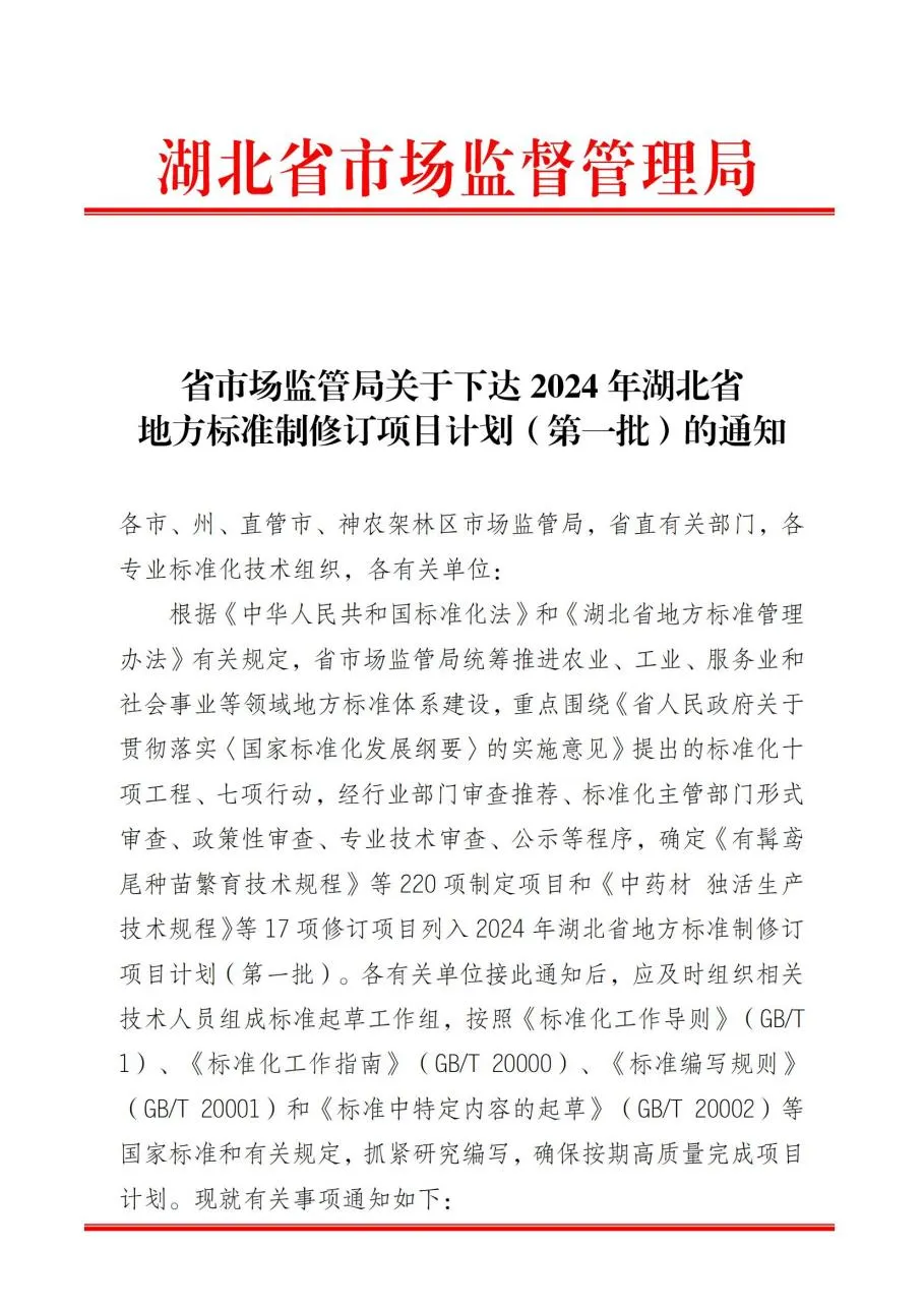 近日,根据《湖北省市场监督管理局关于下达2024年度湖北省地方标准制修订项目计划(第一批)的通知》,永业行作为牵头单位负责起草的《湖北省乡镇生活污水治理项目绩效评价规程》(计划编号:T-Z-03-2024127)和作为参编单位负责起草的《全民所有土地资源资产权益管理信息清查数据库建设规范》(计划编号:T-Z-05-2024194)均成功立项。