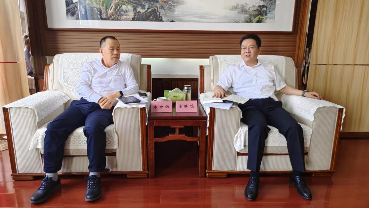 2024年9月11日,永业行党委书记、董事长潘世炳一行赴十堰房县,同县委书记谢晓鸣,县委副书记、县长杨丹华等领导就合作事宜座谈交流。