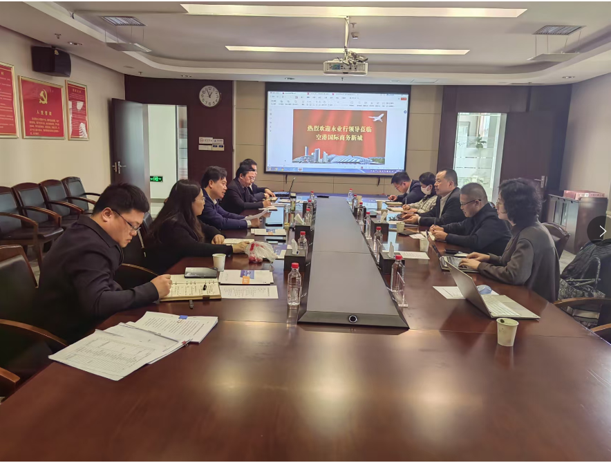 市城投集团置业事业部副总经理谢静,临空投集团公司党委副书记江汉洪、临空投集团公司经营发展部部长彭小军、内控中心主任王俊;永业行市场副总监、投资金融产业链执行总经理裴新桃及团队成员等参加座谈交流。