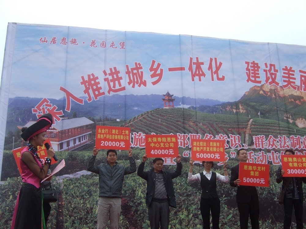 近日,由恩施市委宣传部主办,市司法局、文体局和屯堡乡人民政府承办的“深入推进城乡一体化,建设美丽富饶新马者”暨“干部服务意识”、“群众法纪意识”教育主题活动在恩施市屯堡乡马者村举行。永业行恩施分部副总经理雷小明代表公司参加活动,并为屯堡乡马者村捐款20000元以支援该村经济建设。