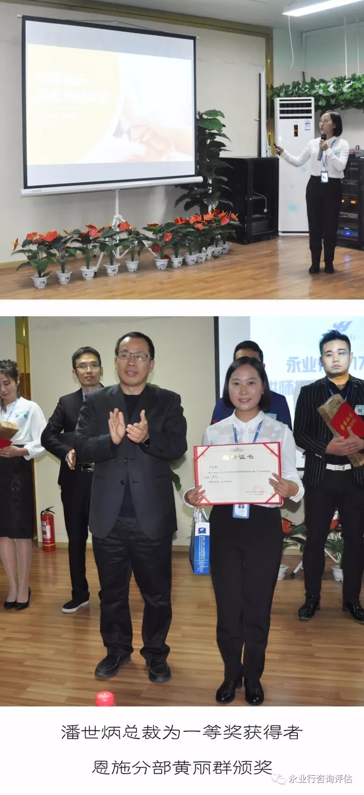 总裁潘世炳在点评中表示,演讲比赛作为永业行传统型活动,旨在广开言路、发掘人才,为永业行青年员工提供展示才能、提升自我的平台。为更进一步充实永业行学院讲师库,永业行在演讲比赛基础上创新开展了讲师擂台赛,各位参赛选手结合各自深耕的专业,迸发出许多创新思维,提出了很多有利于永业行业务发展的建设性思路。希望各参赛选手以此为平台,相互学习、交流,在今后的工作中创造出更大的业绩。