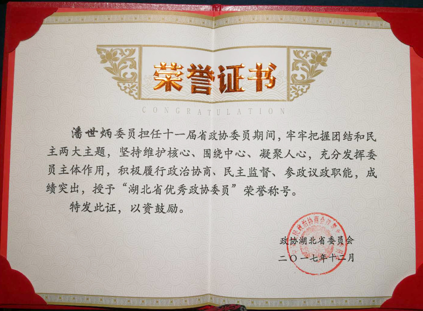 永业行潘世炳被授予“湖北省优秀政协委员”荣誉称号