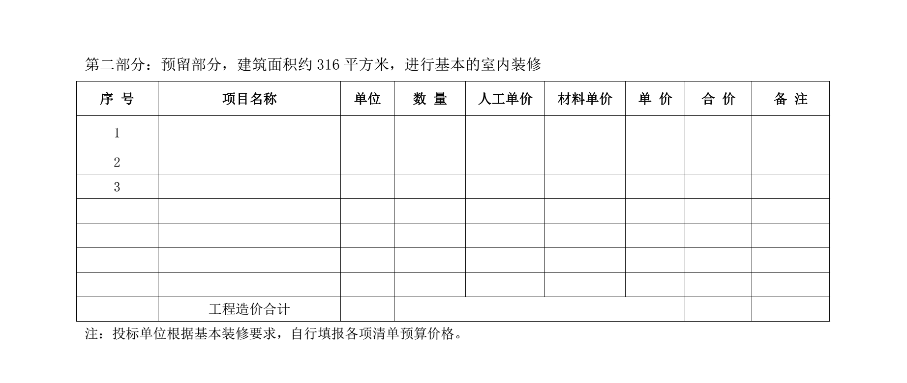 ⑵ 投标报价须包括完成本项目的全部内容,施工、验收、环境检测、办理手续、安全文明施工措施费、建筑材料及建筑垃圾清运出现场,施工用电、用水、现场施工管理等各项费用也应综合考虑在投标报价中。