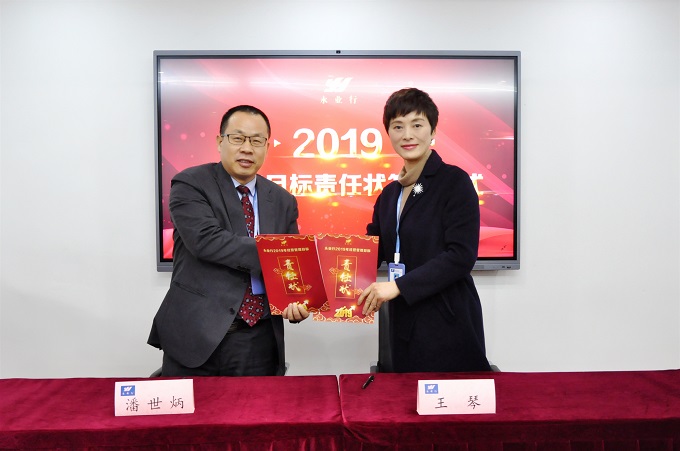 会议举行了2019年目标责任状签订仪式,董事长兼总裁潘世炳、执行总裁王琴与高管及部门负责人签订了《2019年目标责任书》。与会代表还就企业管理创新、提档升级、绩效考评优化、风险控制等主题展开了分组讨论。
