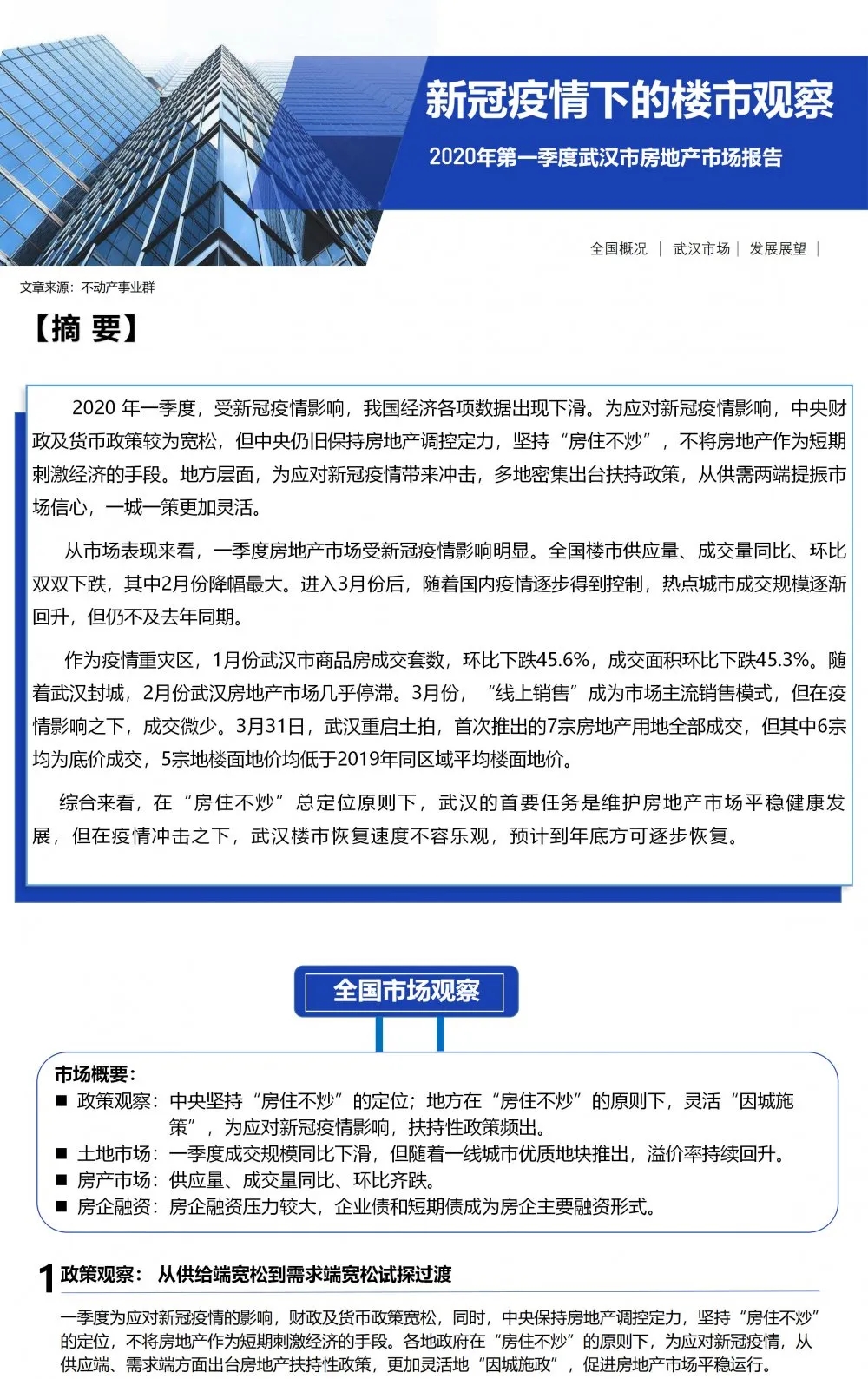 【永业行观察】2020年第一季度武汉市房地产市场报告