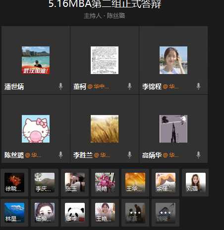 2020年5月16日,华中师范大学MBA硕士论文第二组答辩会在企业微信会议平台上举行。永业行董事长、总裁潘世炳博士应邀担任MBA企业评委。 ​