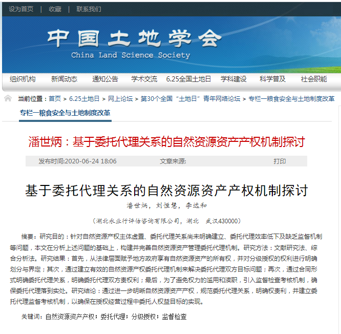 2020年6月25日,中国土地学会举办“第30个全国'土地日'青年网络论坛”活动,本次论坛主题为“耕地保护:艰巨且不可松懈的任务”,永业行提报的8篇论文全部获录用,内容涉及自然资源资产产权机制研究、自然资源资产实物价值评估、生态系统价值实现、闲置宅基地盘活利用、耕地质量评价、农村土地流转等。