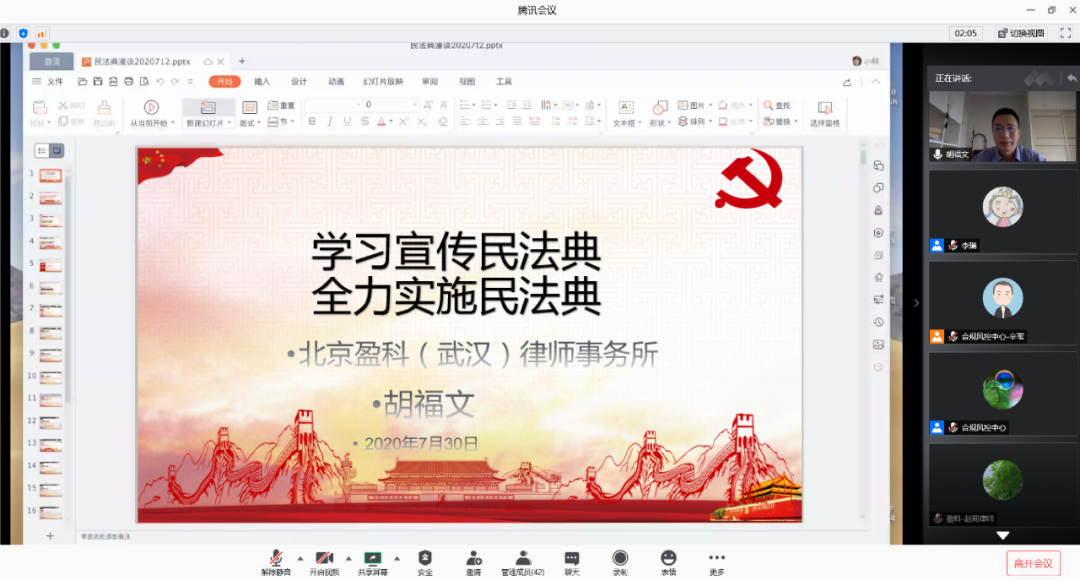 7月30日,永业行组织开展《民法典》专题培训,来自总分部的100余名员工代表通过腾讯会议参加培训。