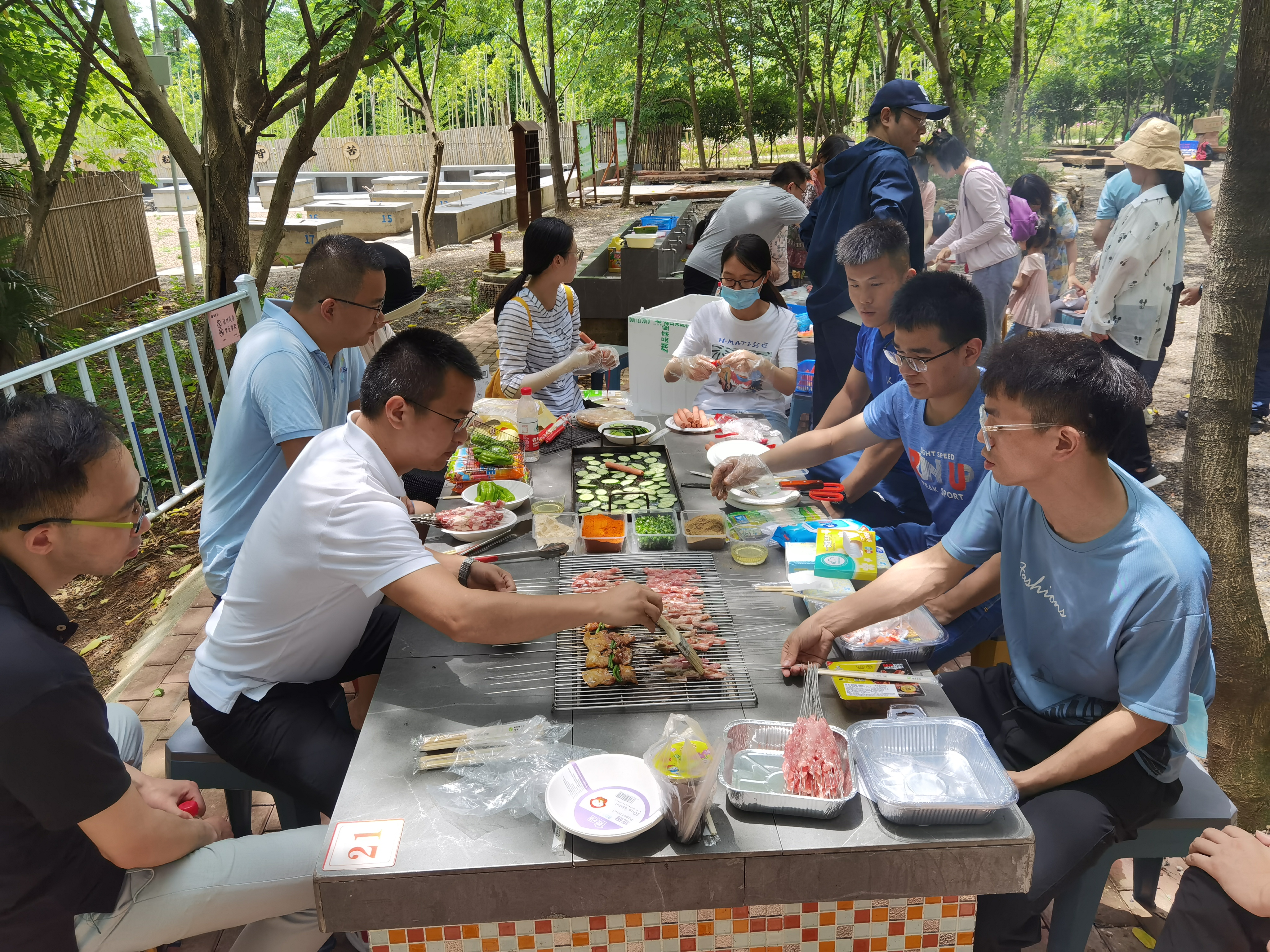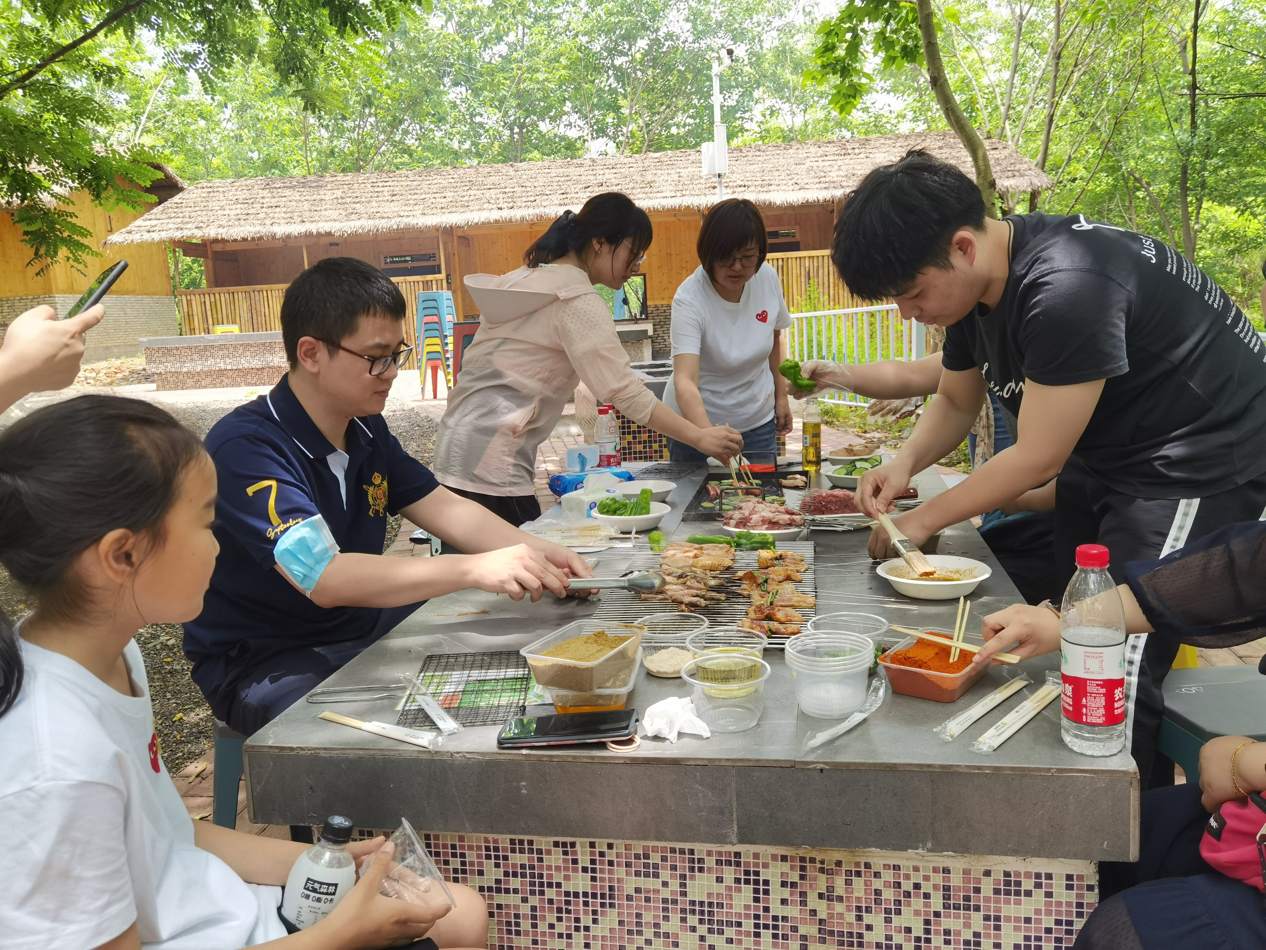 半天行程过后,在孩子们充满快乐和期盼的眼神中,烧烤活动正式开始。在家长们的帮助下,孩子们配合默契,一个个化身成“劳动小能手”,架炉子、涮调料、摆桌子、串食材,一时间热火朝天,大家忙得不亦乐乎却有条不紊。大小朋友们围坐在一起,吃着烤串,闲话家常,开怀大笑,各种美味香气萦绕在空气中,场面热闹而欢快!