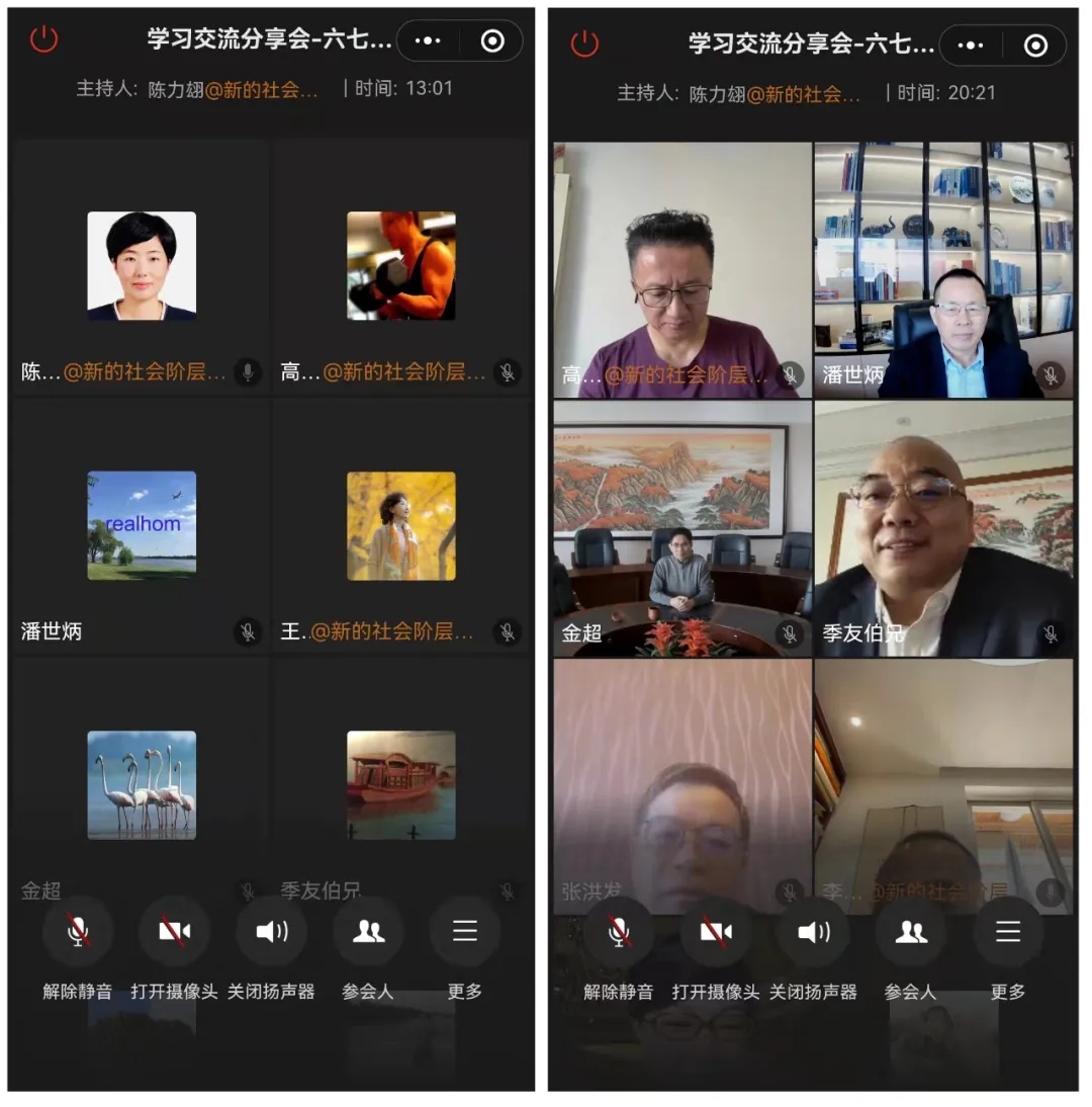 自由交流环节,六分团严建文、林海青、施晓军、皮剑龙,七分团王蓓、李晓远分别发言,并进行了热烈的交流讨论,大家一致认为,作为新的社会阶层人士,贯彻落实好党的十九届六中全会精神,要立足本职工作,为实现第二个百年奋斗目标、实现中华民族伟大复兴的中国梦而不懈奋斗。
