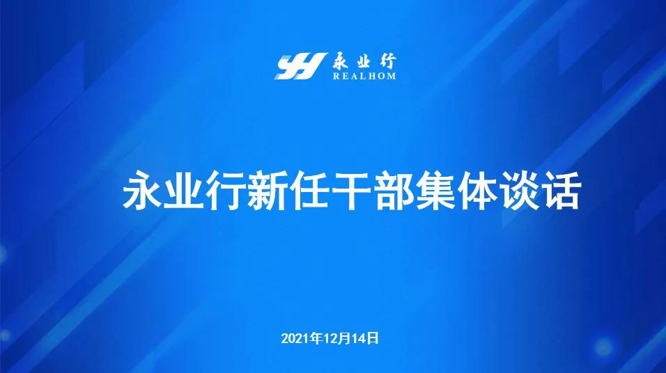 2021年12月14日下午,永业行开展新任干部集体谈话,公司党委书记、董事长潘世炳,轮值总裁王琴,副总裁程为民,资产与财税咨询事业部、永业行临空项目管理(湖北)有限公司、乌蒙永业行工程管理咨询(贵州)有限公司(投资咨询事业群贵州区域)和各职能部门新任干部以现场或视频的方式参加了会议。会议由副总裁程为民主持。