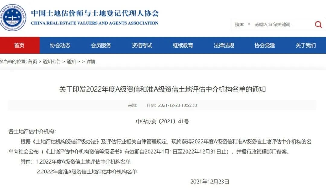 2021年12月23日, 中国土地估价师与土地登记代理人协会(下称“中估协”)发布“2022年度A级资信土地评估中介机构”名单,在全国120家A级资信机构中,永业行位列全国第四、湖北第一,连续14年获评“A级资信土地评估机构”。中估协同时公布了第十三批资深会员名单,副总裁雷小军荣获土地估价方向资深会员荣誉。