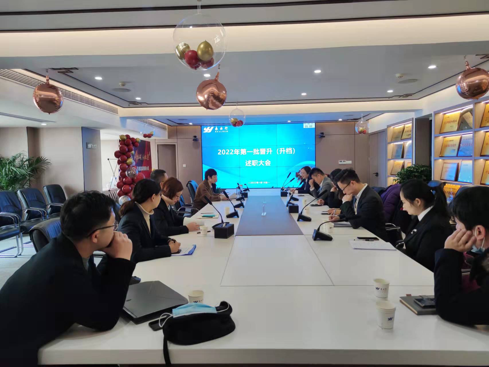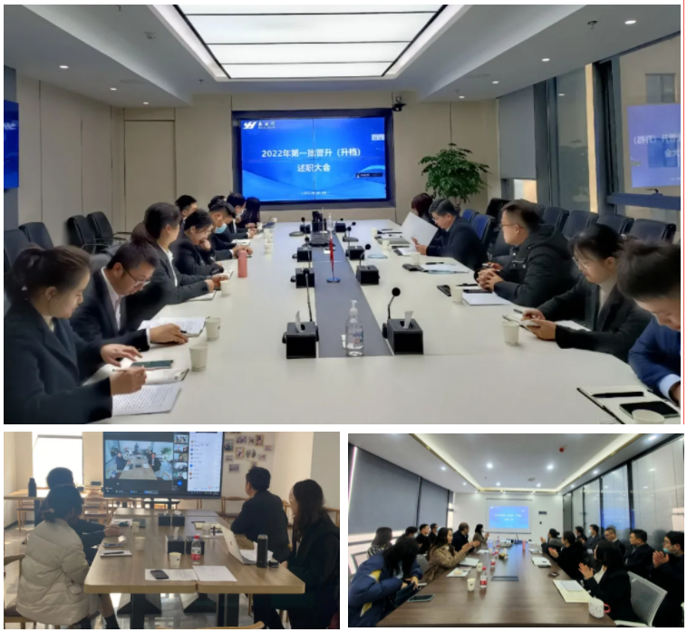 2022年1月18日,永业行召开2022年第一批拟晋升人员述职会议。轮值总裁王琴,副总裁雷小军、吴学锋、程为民,总部职能部门和各业务部门管理人员代表、优秀员工代表及全体拟晋升档级人员共计80余人在四个会场参加了会议。