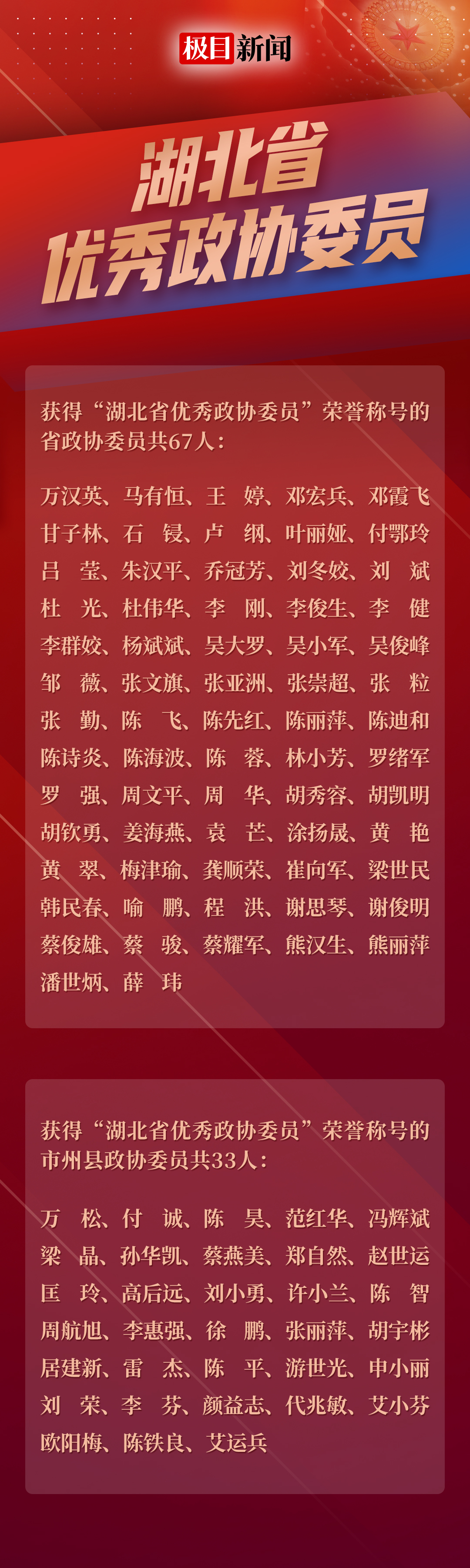 极目新闻:重磅!100名“湖北省优秀政协委员”公布!