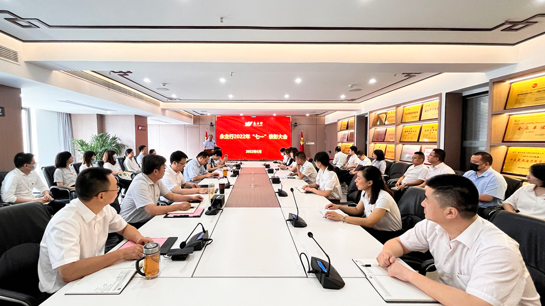 2022年6月28日,永业行党委举办“七一”表彰大会,对先进党支部和优秀共产党员进行表彰。永业行党委书记、董事长潘世炳出席会议并讲话。公司党委成员、高管、各党支部书记、党员代表,相关部门负责人共计50余人通过线上或线下方式参加会议。党委委员、常务副总裁吴学锋主持会议。