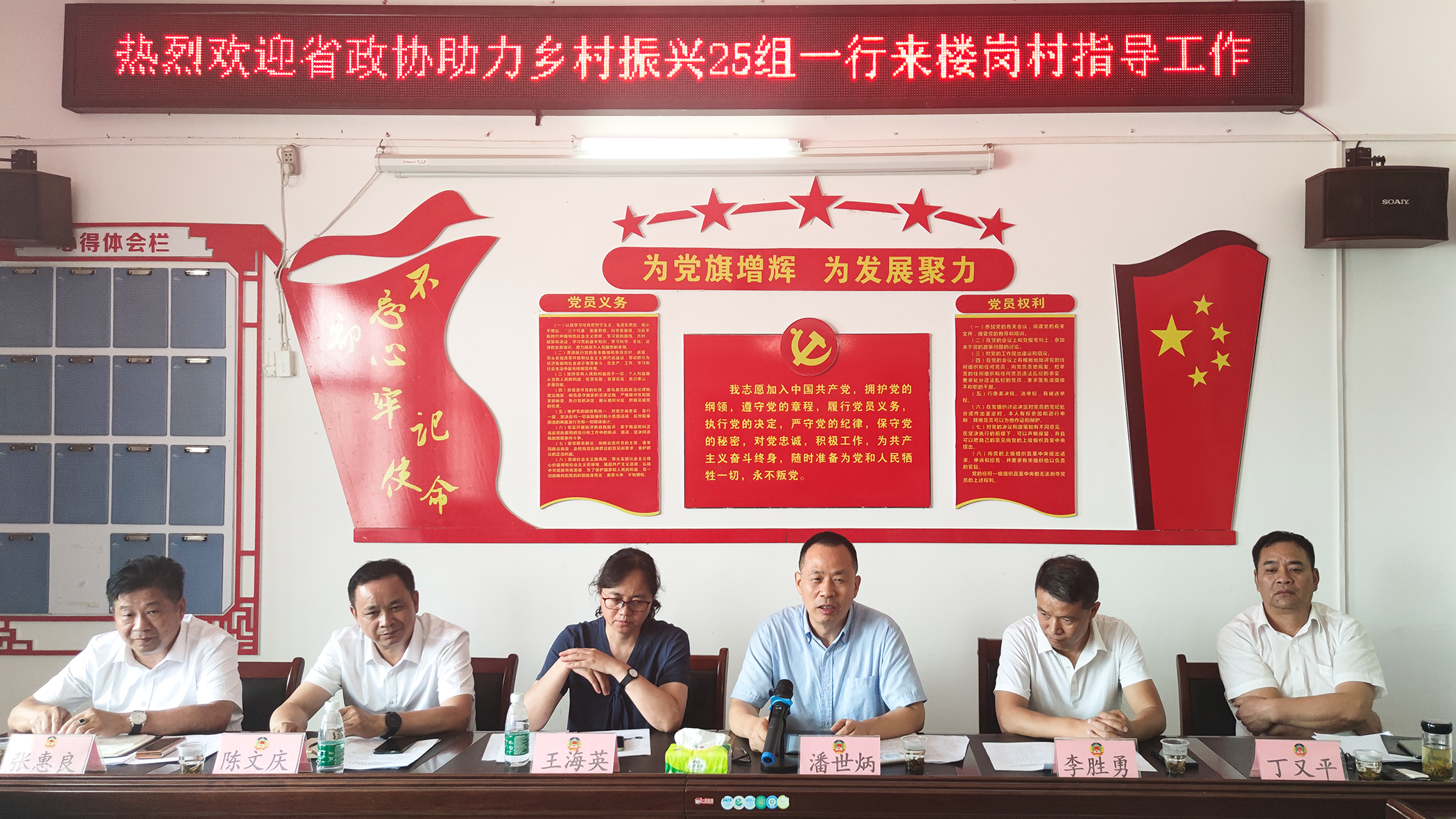 2022年7月4日,省政协委员、省政协乡村振兴行动委员组第25组(以下简称25组)组长、永业行董事长潘世炳一行前往对口助力联系村--蕲春县管窑镇楼岗村,就如何开展乡村振兴工作开展调研。蕲春县政协党组书记、主席李国忠主持调研座谈,党组成员、副主席郑维全,党组成员、秘书长高鸿彬等参加调研。