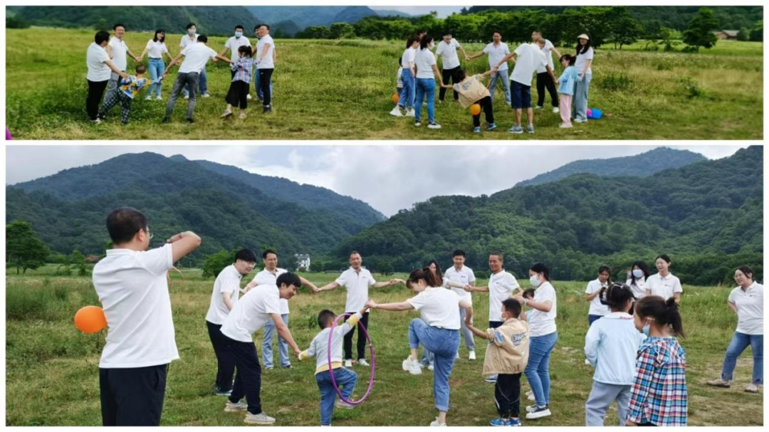 大九湖畔,一圈到底、筷子夹球和两人三足踩气球……大家在一片欢声笑语中敞开心扉,以饱满的热情参与到拓展活动中。