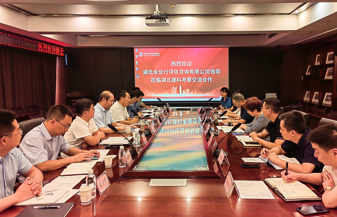 潘世炳对湖北建科集团的热情接待表示感谢,介绍了永业行发展历程、党建情况、社会责任、业务结构等,并就集团经营管理模式、研发创新、质量体系建设、风险防控、数字化转型、文化建设等方面进行了交流。