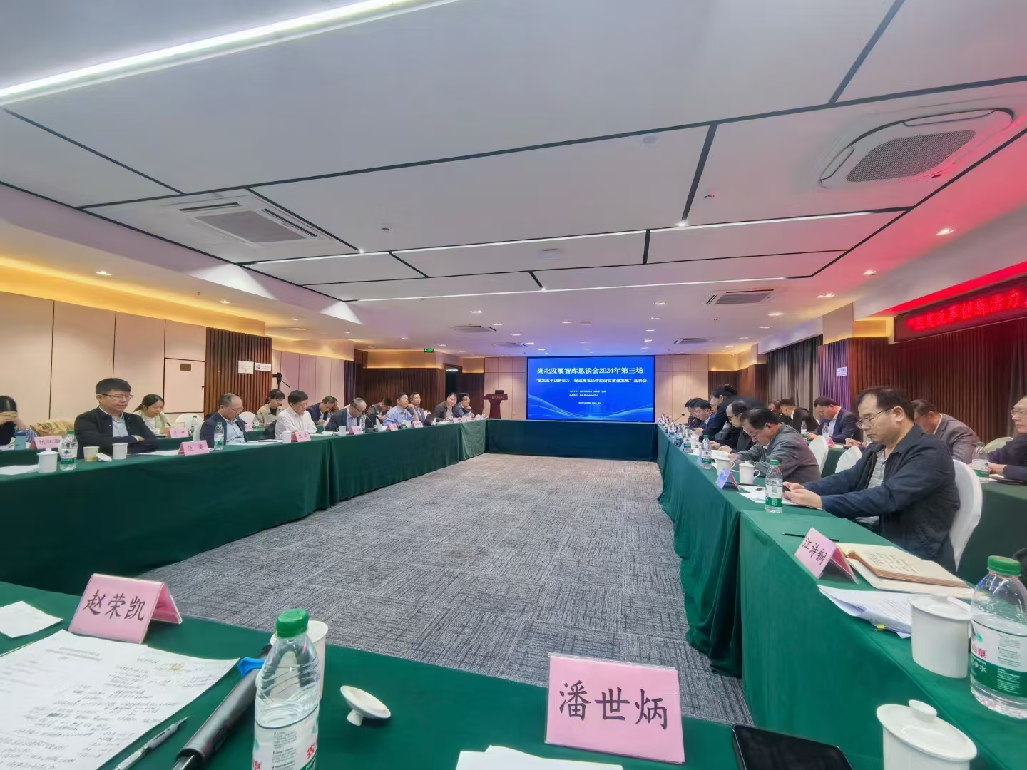 2024年10月20日,湖北发展智库恳谈会2024年第三场——“激发改革创新活力,促进我省民营经济高质量发展”恳谈会在武汉召开。省社科联党组书记、常务副主席刘爱国,省政府研究室党组成员、副主任黄良港出席会议并讲话。省政府参事、永业行董事长潘世炳参加会议并作《聚焦绿色转型升级  激发民营经济发展》主题发言。