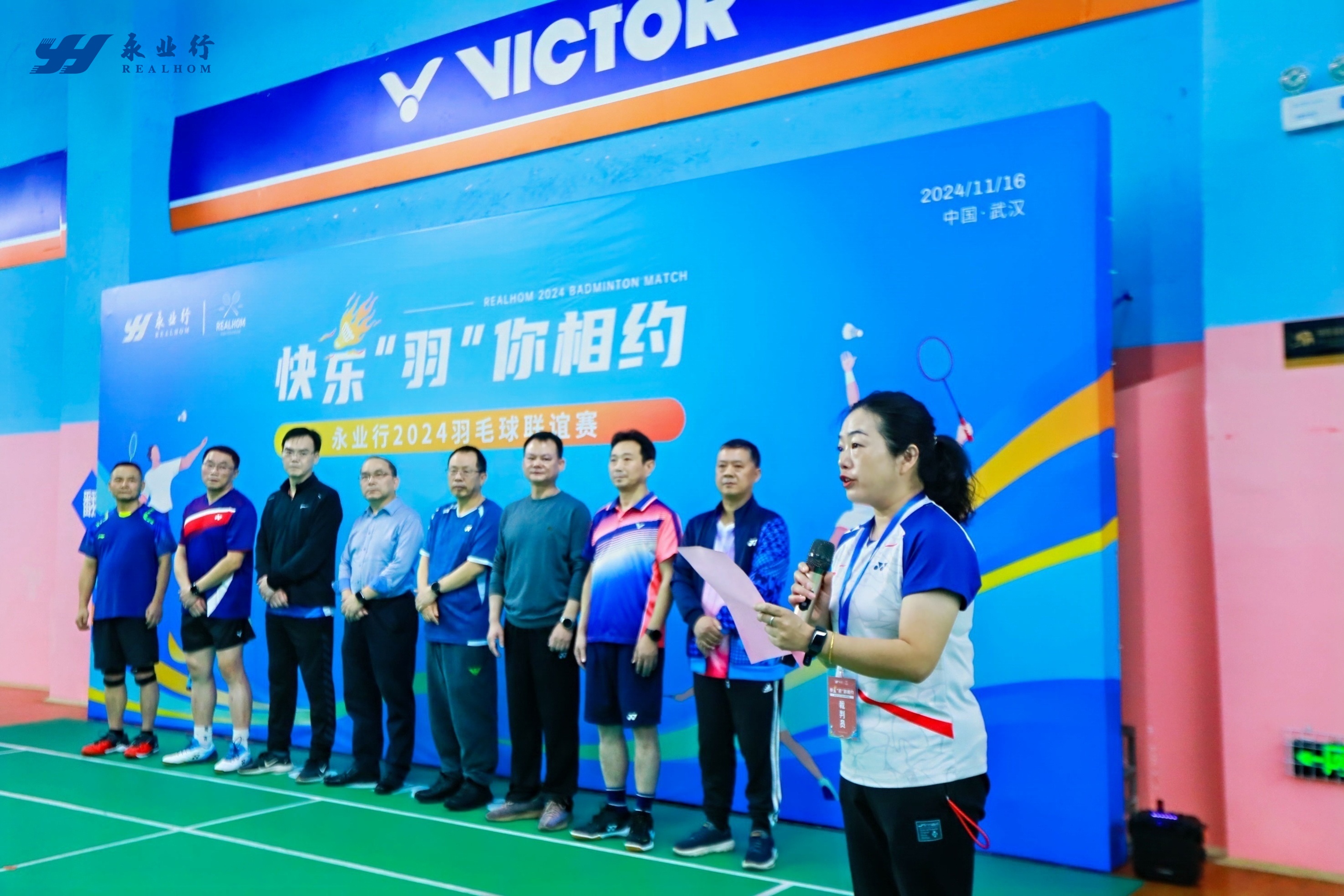 胡太荣代表武昌区四大家对活动举办表示祝贺,向永业行主动在武昌地区搭建体育互动交流、运动健身平台表示敬意和感谢!他表示,永业行羽毛球联谊赛历经数载,已在行业内树立了良好的口碑,不仅彰显了行业同仁对体育精神的热爱与执着追求,更为推广低碳生活方式、加强行业间体育文化交流提供了宝贵的平台。他希望通过比赛充分展示大家拼搏进取、昂扬向上、奋勇争先的良好精神风貌,激励更多同仁积极参与健康向上的体育活动,为各行各业、各条战线高质量发展注入新的生机与活力。