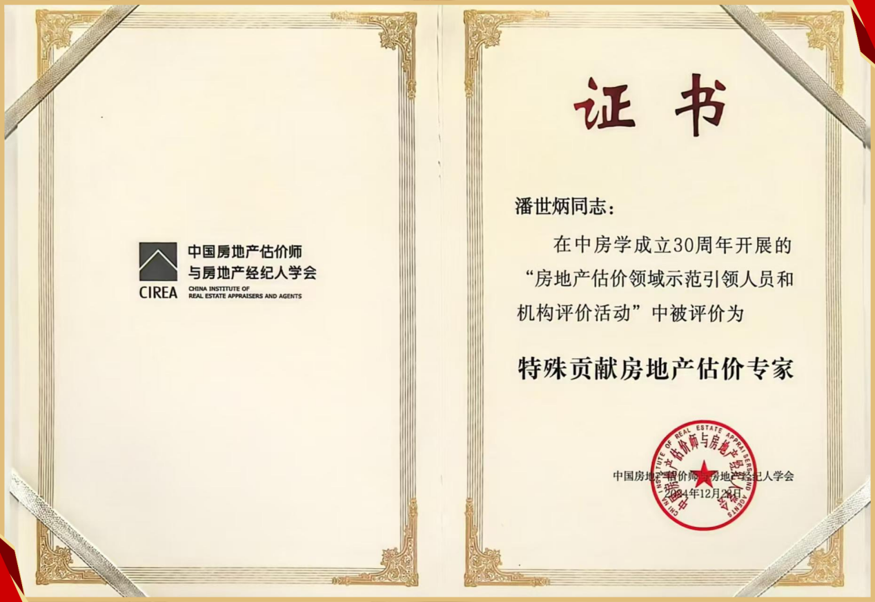 凭借自身的专业能力和卓越贡献,永业行党委书记、董事长潘世炳被评为 “特殊贡献房地产估价专家”,常务副总裁吴学锋获评 “优秀房地产估价师”。