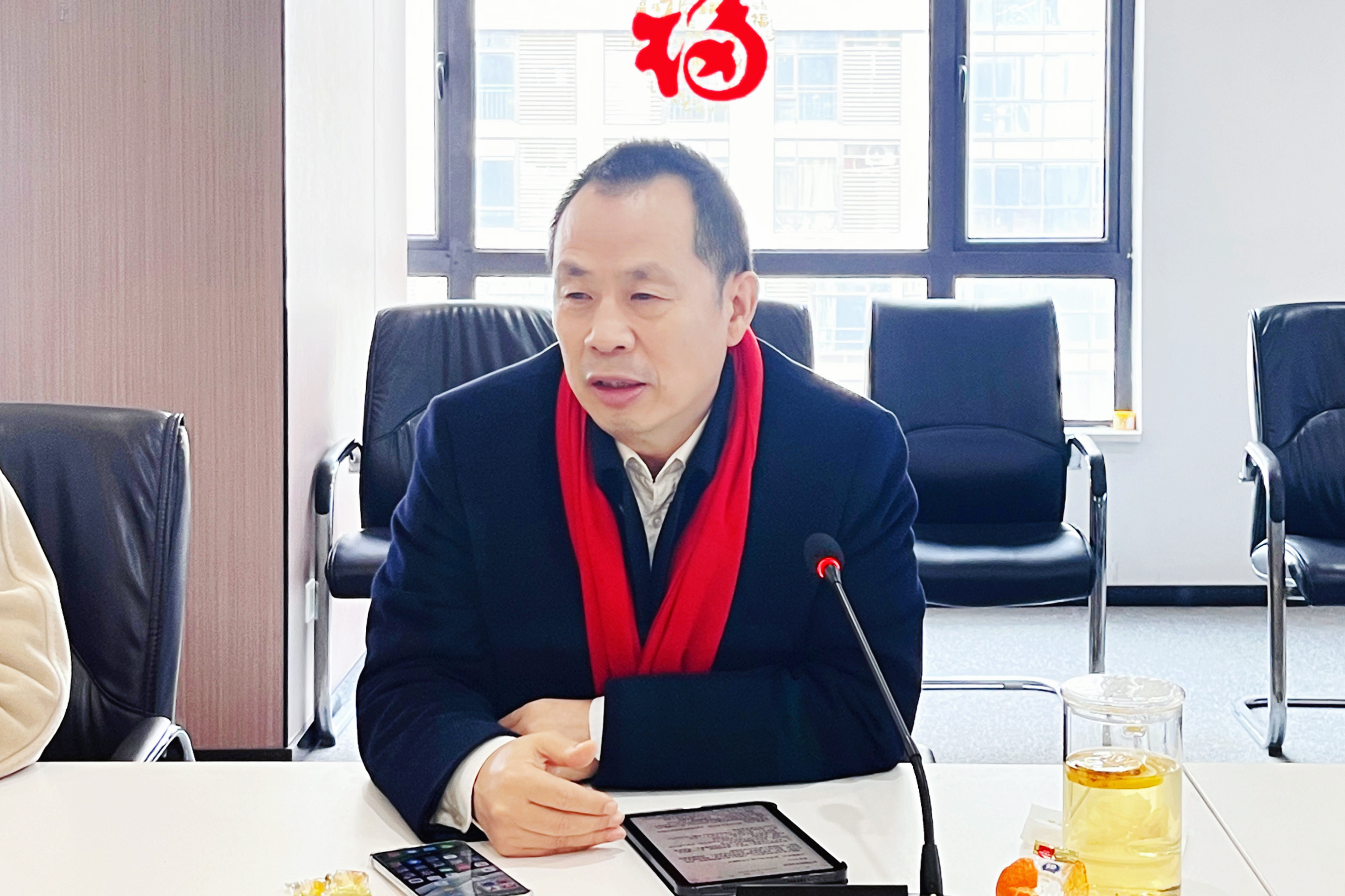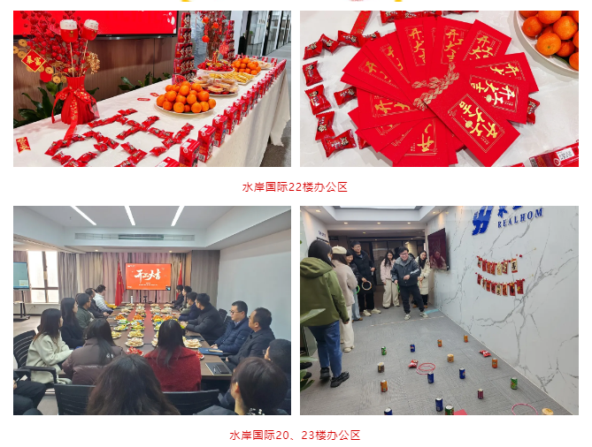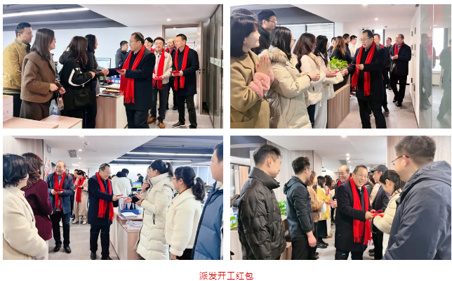团拜会开始前,潘世炳带领高管团队至水岸国际20-23层办公区进行走访团拜,向员工派发新年利是,送予新年祝福。