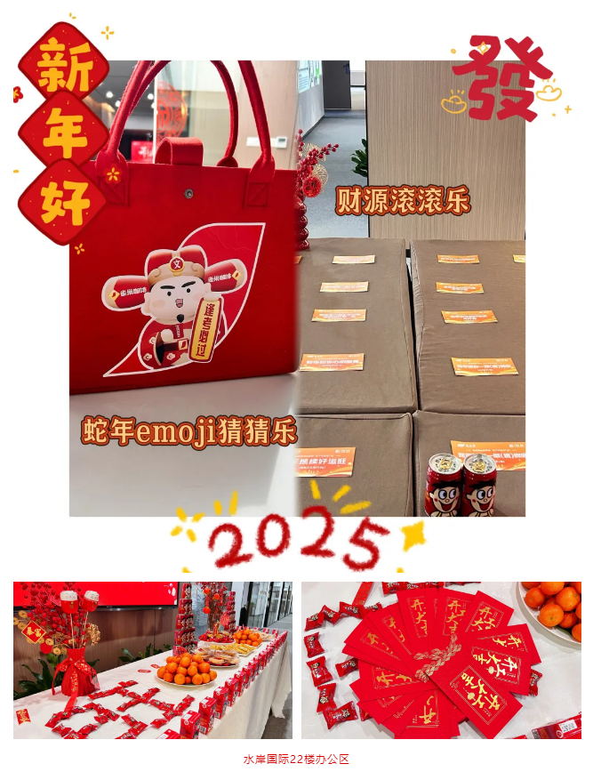 本次“开门红”系列活动,各部门、分部、办公区设置了新年红包墙以及蛇年emoji猜猜乐、财源滚滚乐等创意开工小游戏,寓意新的一年,欢乐领取蛇年第一封红包祝福,怀揣连连鸿运,活力满满向前冲。